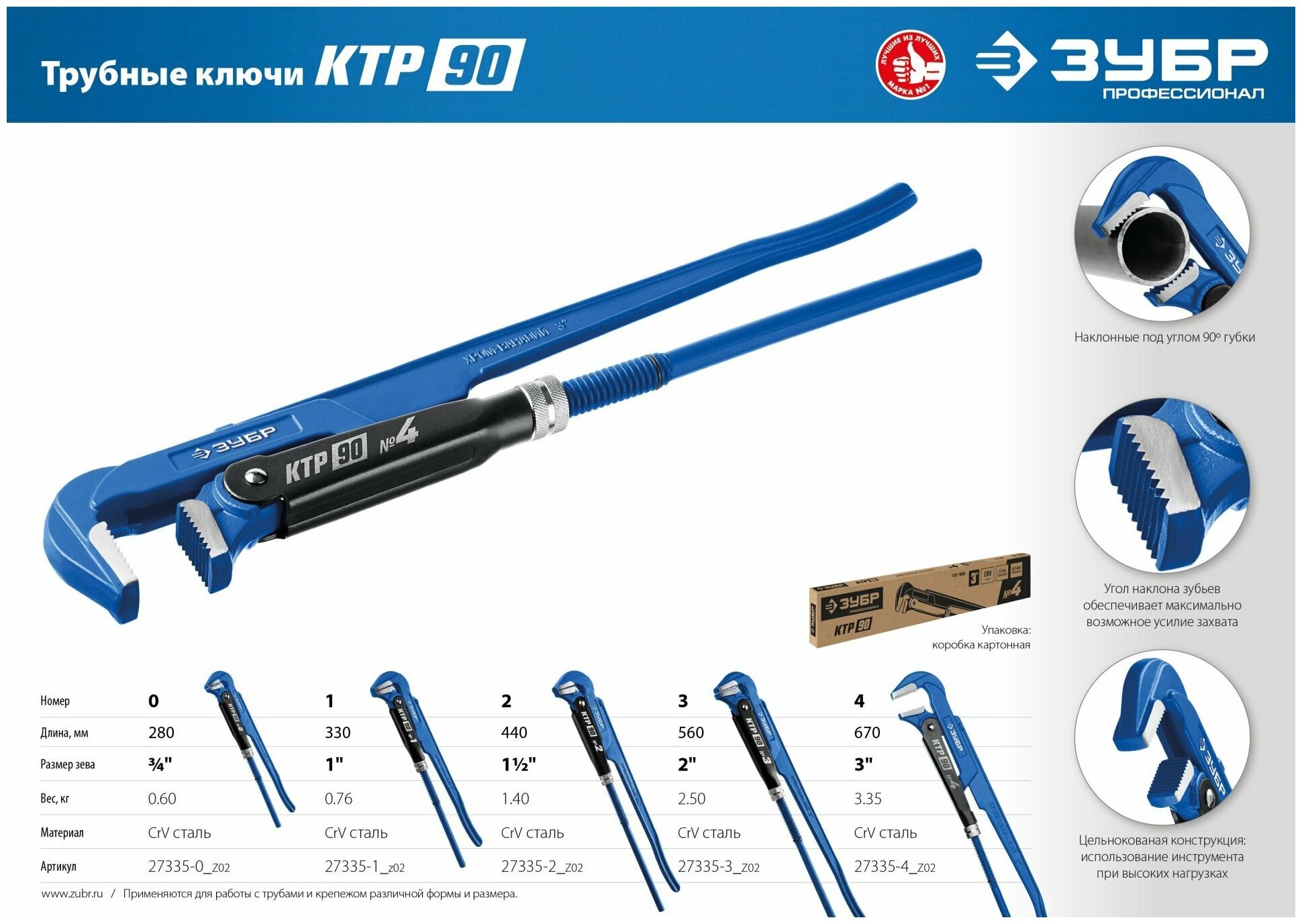 ЗУБР КТР-90, №0, ключ трубный, прямые губки(27335-0_z02)