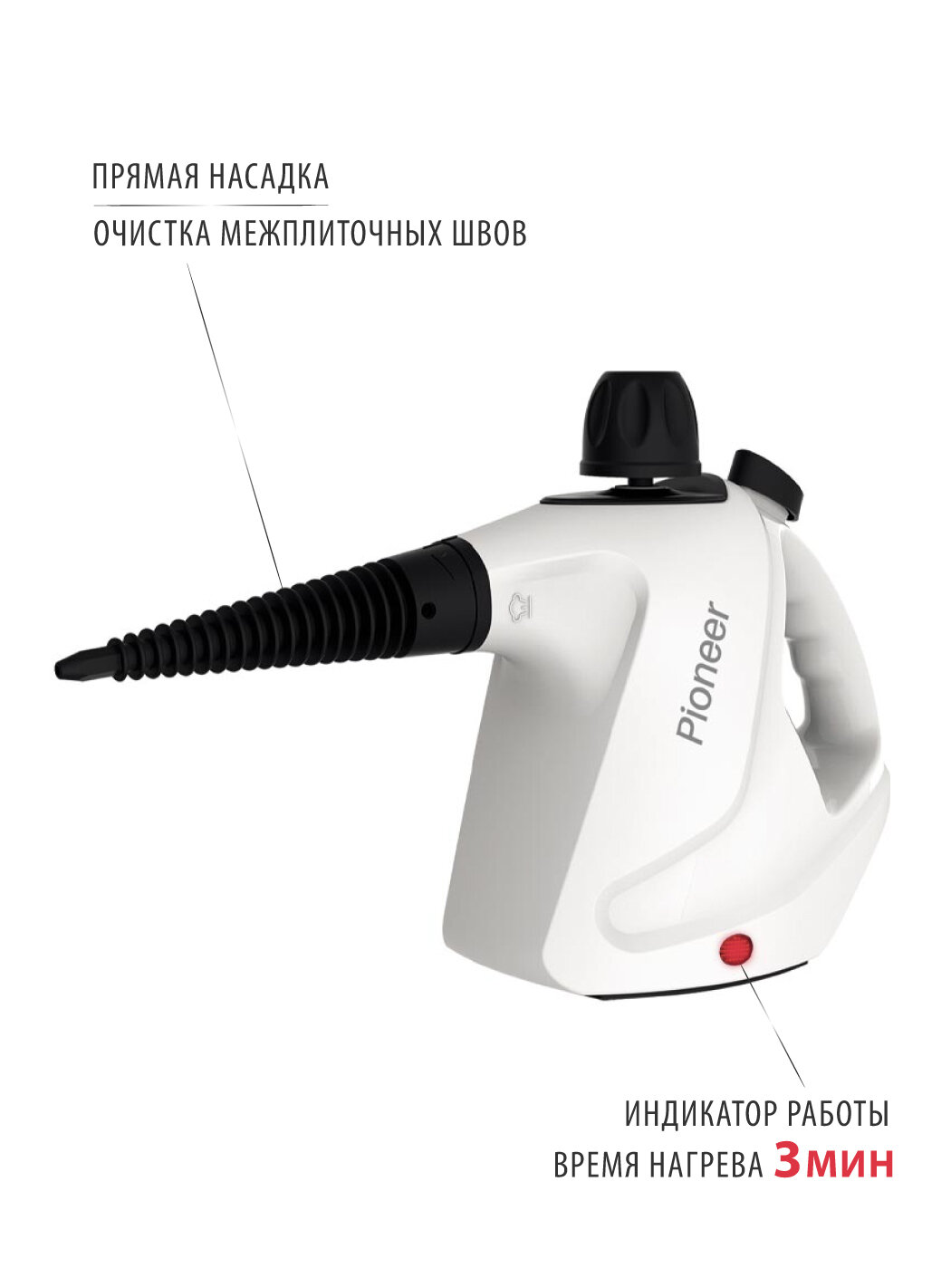 Пароочиститель ручной 5 в 1 SC203 Pioneer со световой индикацией, давление пара 2,6-3,2 бар, 1050 Вт интересное: