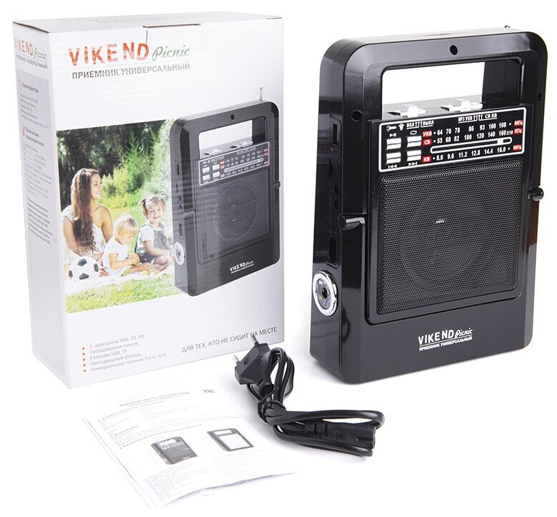 Приемники VIKEND Радиоприемник VIKEND Picnic, УКВ 64-108МГц,акб1200мA,бат.2*R20,USB/TF,фонарь
