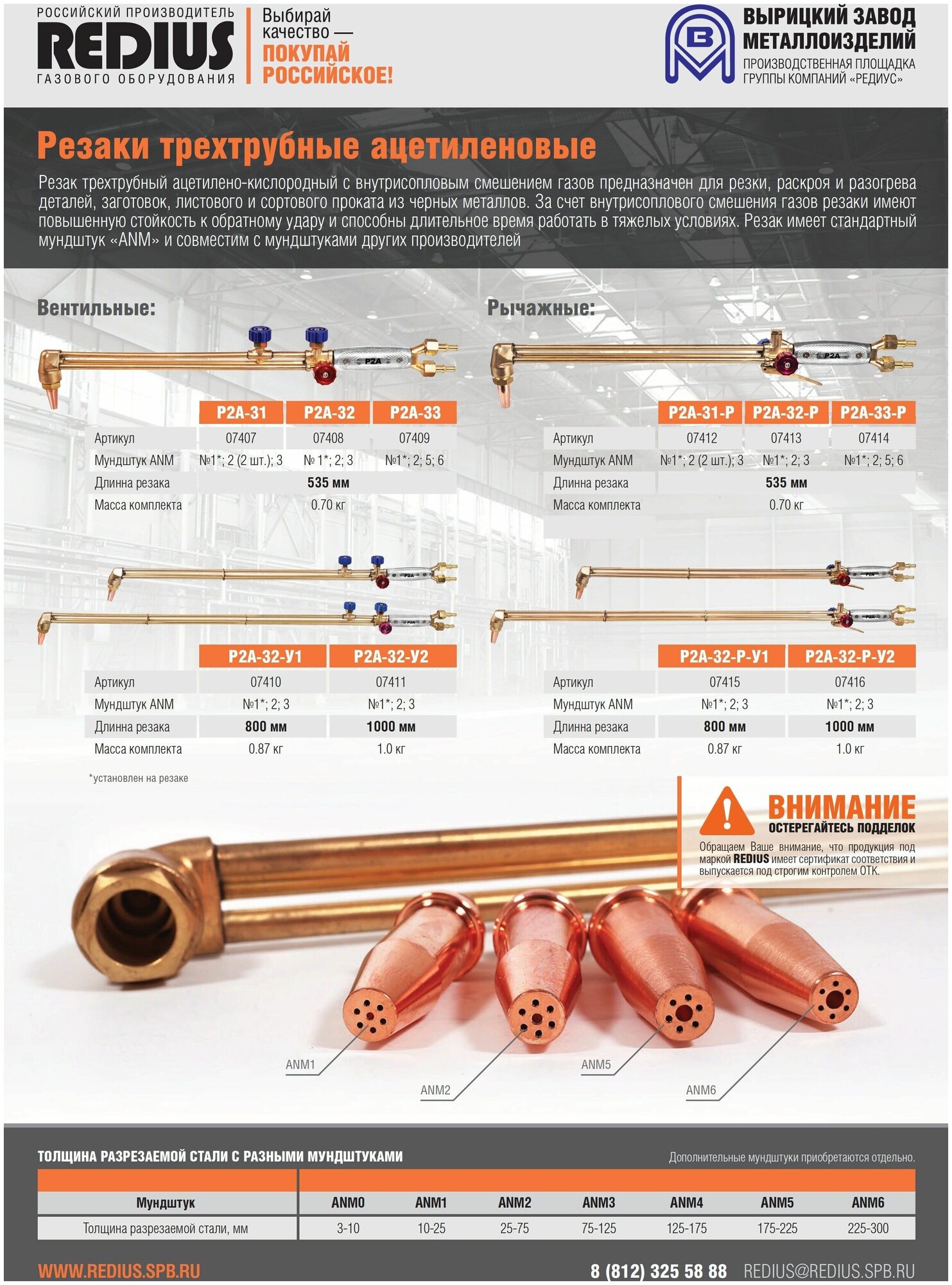 Резак ацетиленовый Р2А-32-Р (до 300 мм) (ООО "редиус 168) (трехтрубный) (07413) интересное: