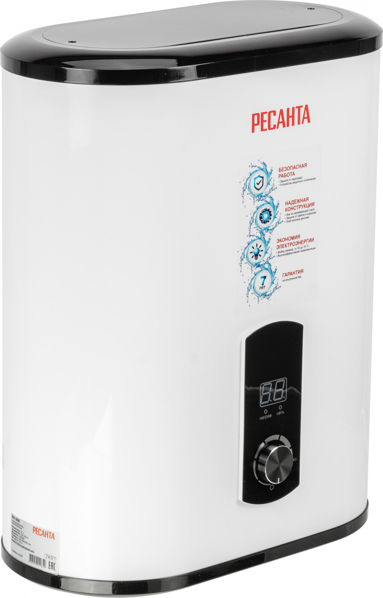 Водонагреватель Ресанта ВН-30В 74/5/1 /2000Вт, вертикальный, 30л, диспл./
