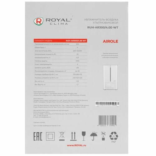 RUH-AR300/4.0E-WT ROYAL Clima Увлажнитель воздуха AIROLE