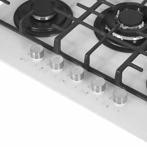Встраиваемая газовая панель Korting/ Газовая варочная панель из закаленного стекла, ширина 70 см, 5 высокоэффективных конфорок, сверхмощная конфорка WOK 3,8 кВт, автоматический электроподжиг, газ-контроль каждой конфорки, передние металлические переключат