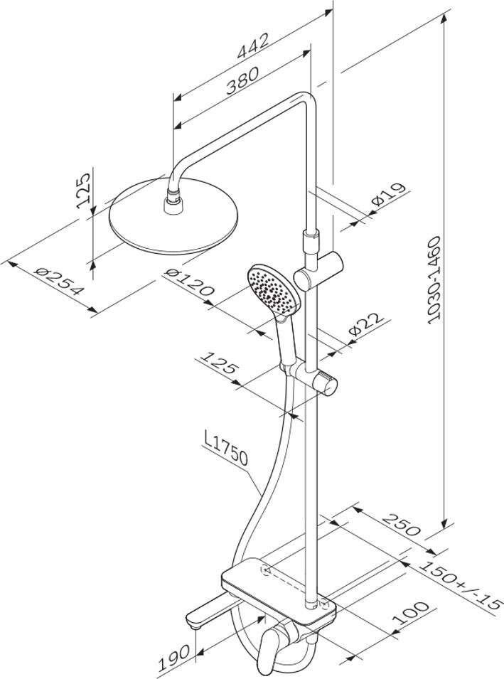 F0780700 Like, душ.система: см-ль-полка д/ванны/душа, душ.штанга 1030-1460мм, верхний душ 220 мм, ру