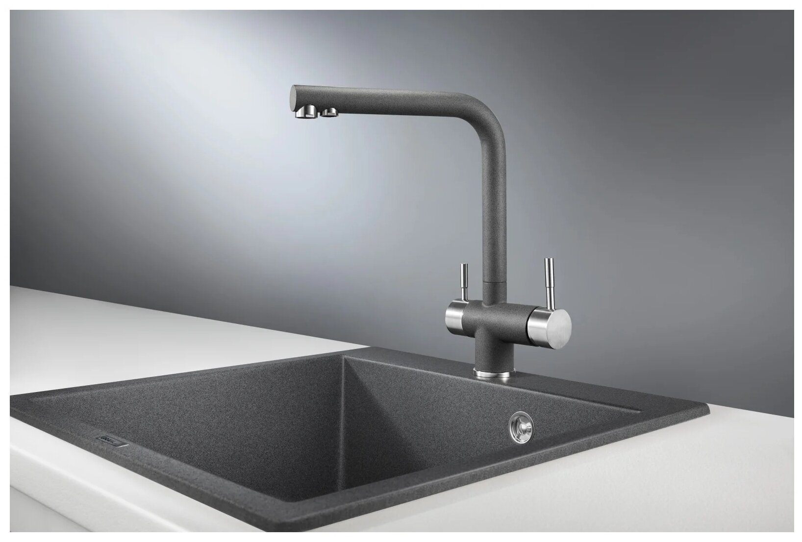 | Плюсы: | Чёрный цвет, кран для фильтрованной воды |