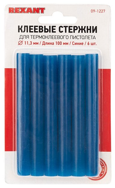 Стержни клеевые Ø11мм, 100мм, синие (6 шт/уп), блистер REXANT 1 упак арт. 09-1227