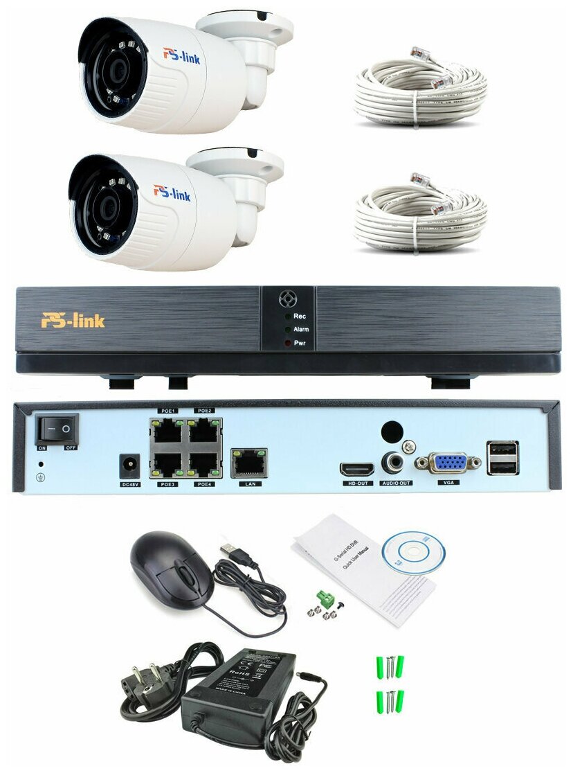 Купить Комплект видеонаблюдения IP Ps-Link KIT-С202IP-POE 2 камеры для улицы 2Мп