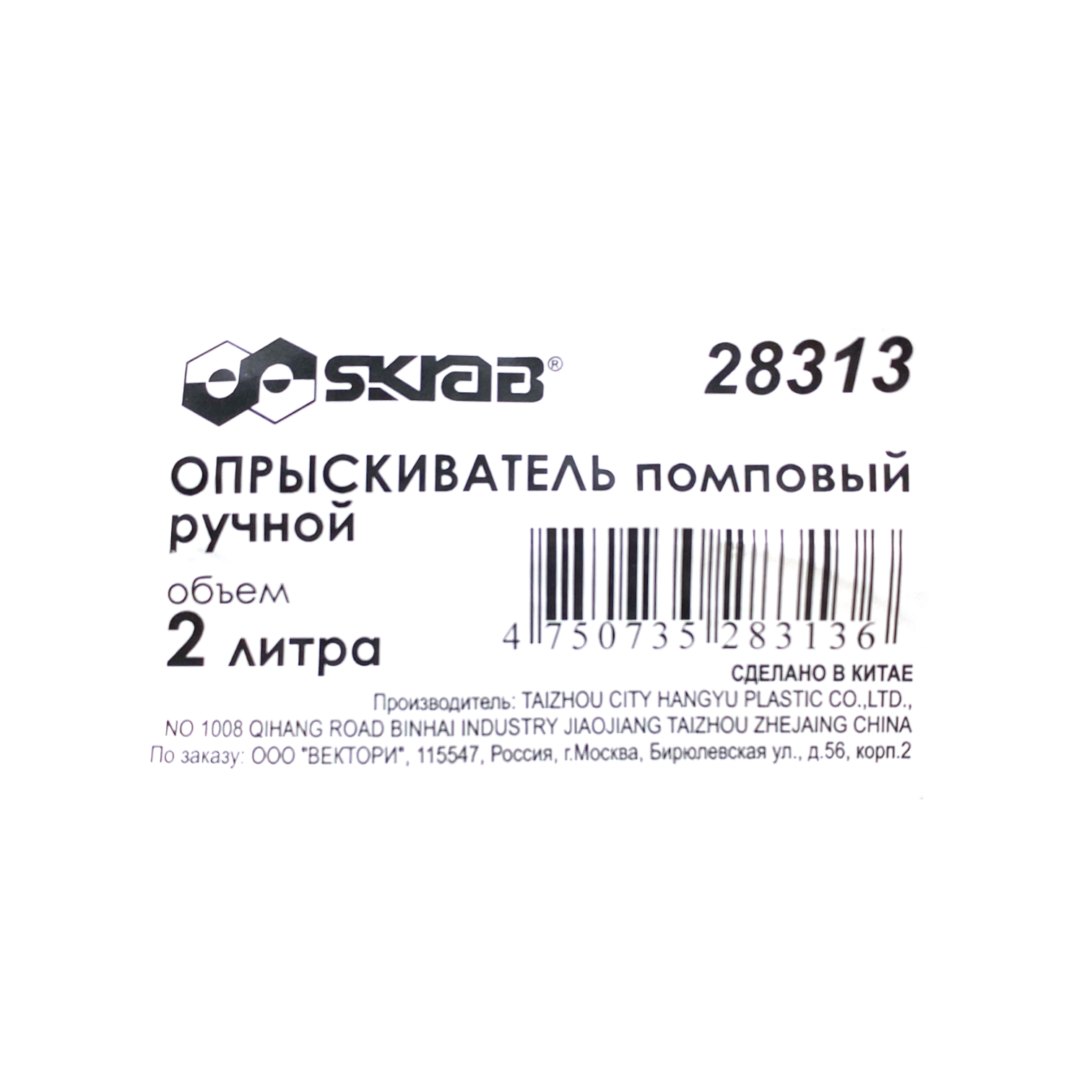 Ручной помповый опрыскиватель SKRAB 2 л 28313