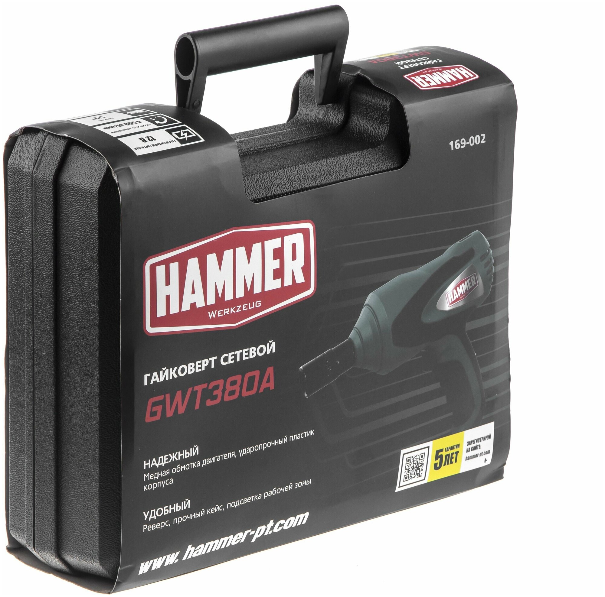 Гайковерт ударный HAMMER GWT380A 12В 380Нм, кейс
