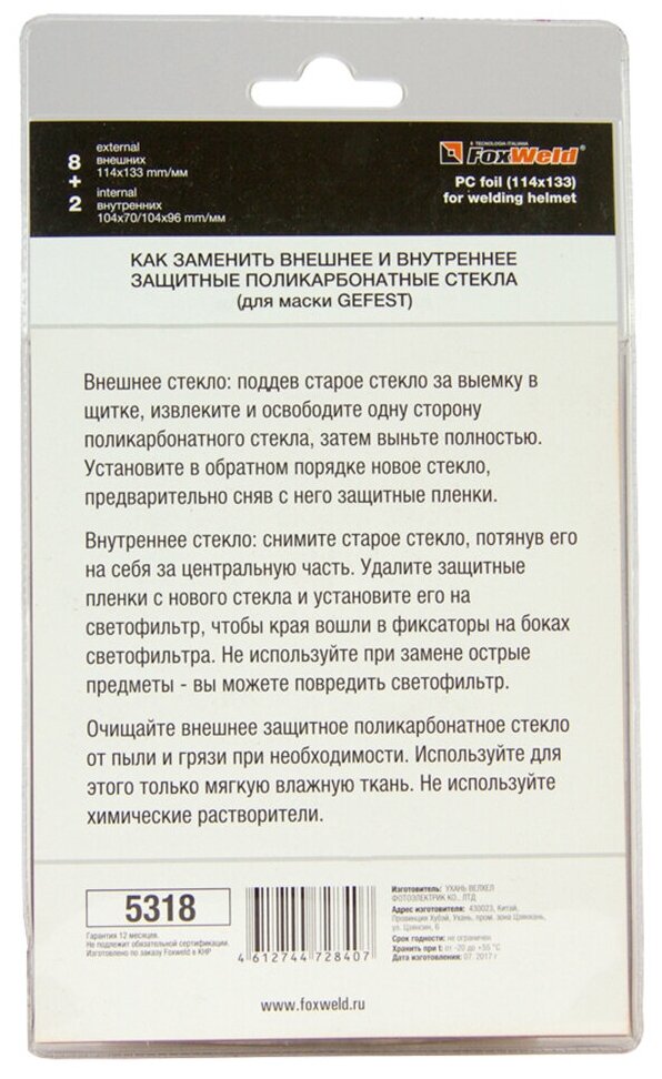 Стекло поликарбонатное FoxWeld №3 10 шт интересное: