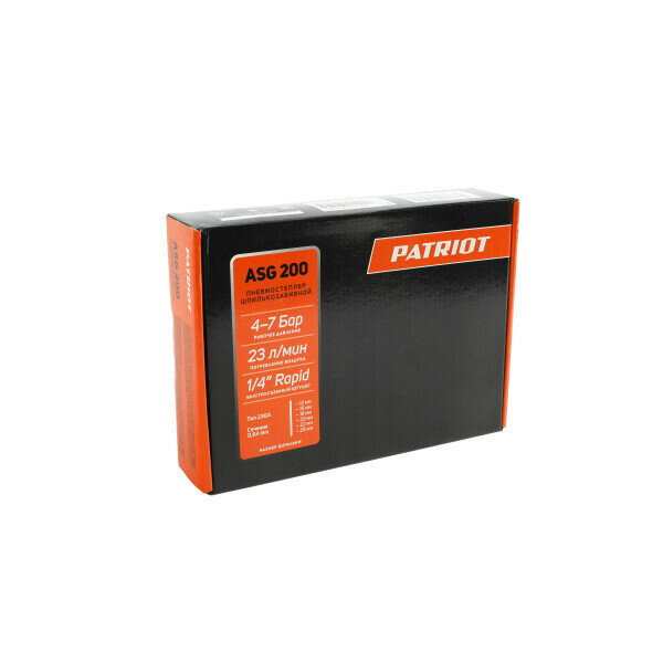 Пневмостеплер шпилькозабивной PATRIOT ASG 200, 23 л/мин, шпилька - Тип 23 (23GA); длина 12-25 мм; сечение 0,64 мм, 100 шт.