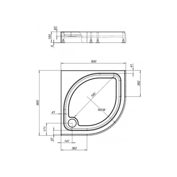 Душевой поддон акриловый белый 90х90см Damixa DX35WT-405-090MT