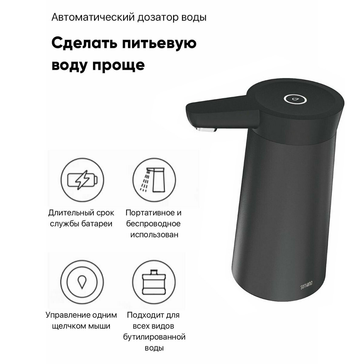 Автоматическая помпа Sothing Bottled Water Pump Wireless DSHJ-S-2004 Black