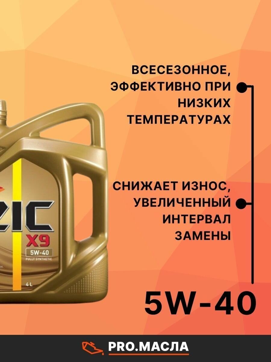 Синтетическое моторное масло ZIC X9 5W-40 SN/CF, 4 л, 4 кг, 1 шт