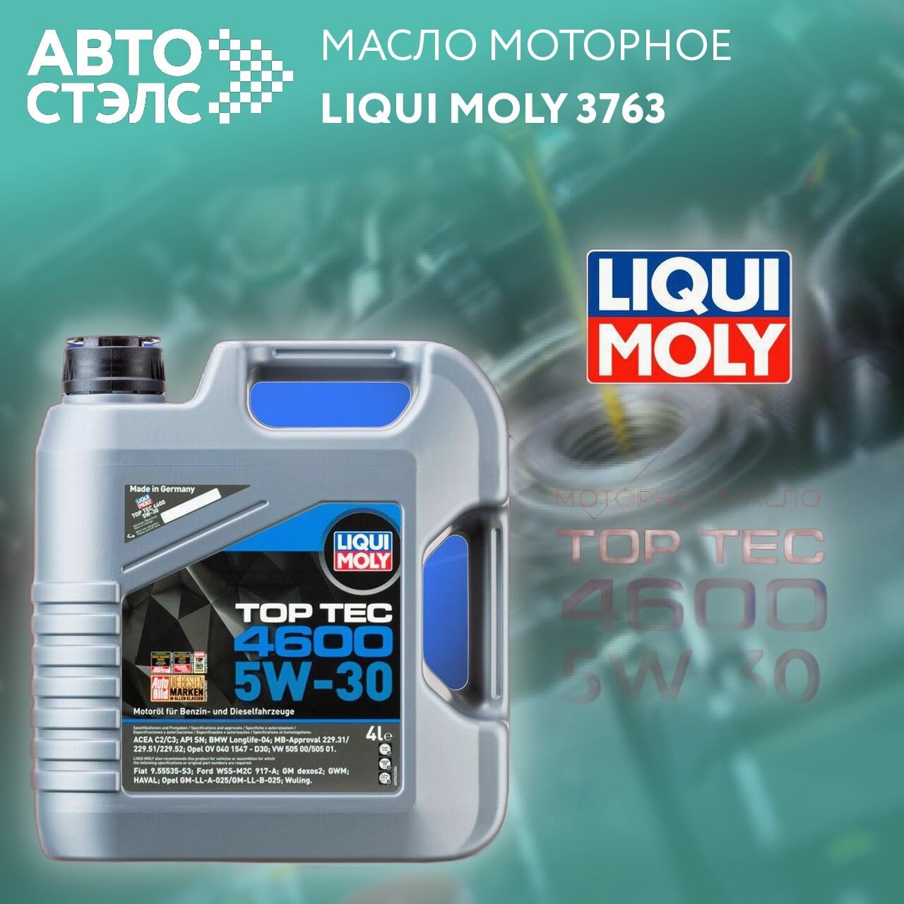 Моторное масло синтетическое LIQUI MOLY Top Tec 4600 5W-30, 4л, артикул 3763
