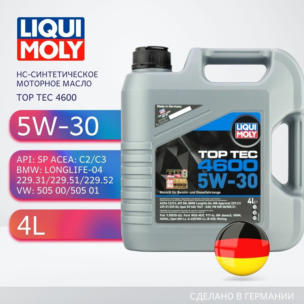 Ниже Вы можете прочитать отзывы на Моторное масло Liqui Moly Top Tec 4600 5W-30 HC-синтетическое 4 л, ознакомится с подробными характеристиками, посмотреть интересные обзоры и фотографии на Моторное масло Liqui Moly Top Tec 4600 5W-30 HC-синтетическое 4 л.