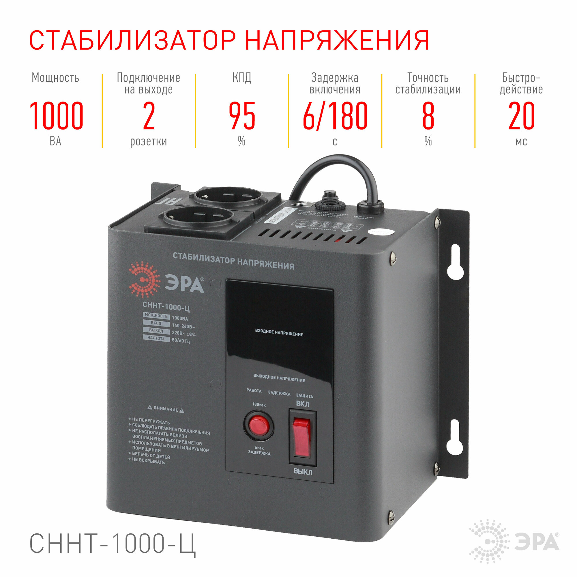Купить ЭРА СННТ-1000-Ц ЭРА Стабилизатор напряжения настенный, ц.д., 140-260В/220/В, 1000ВА