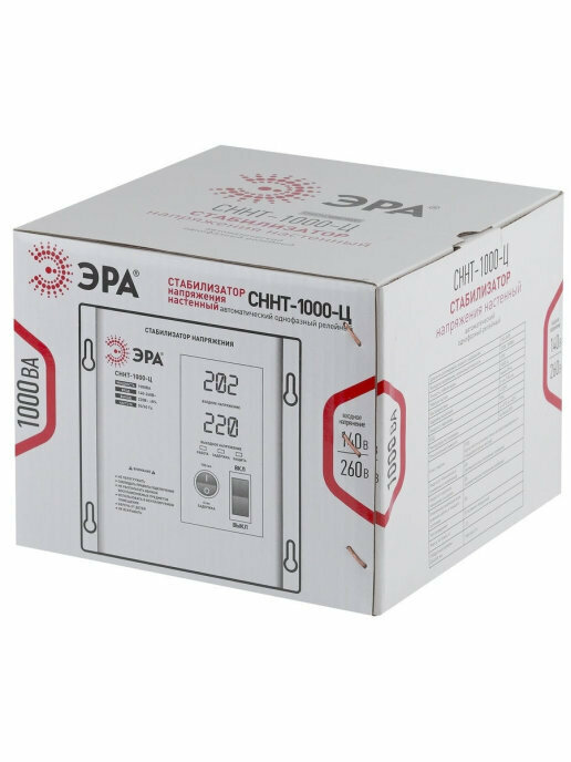 Стабилизатор напряжения настенный, ц.д., 140-260В/220/В, 1000ВА (4/72) СННТ-1000-Ц ЭРА