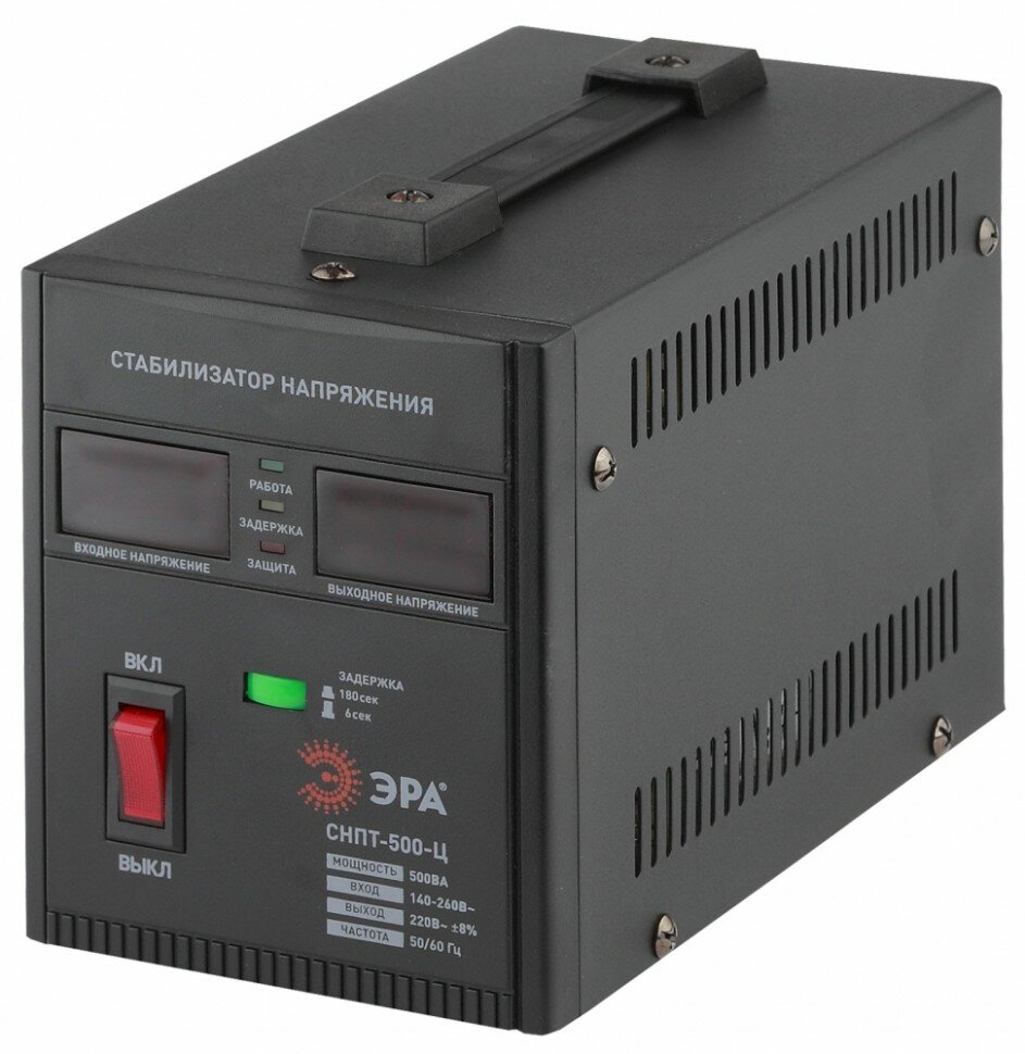 Стабилизатор напряжения Эра СНПТ-500-Ц, черный [б0020157]