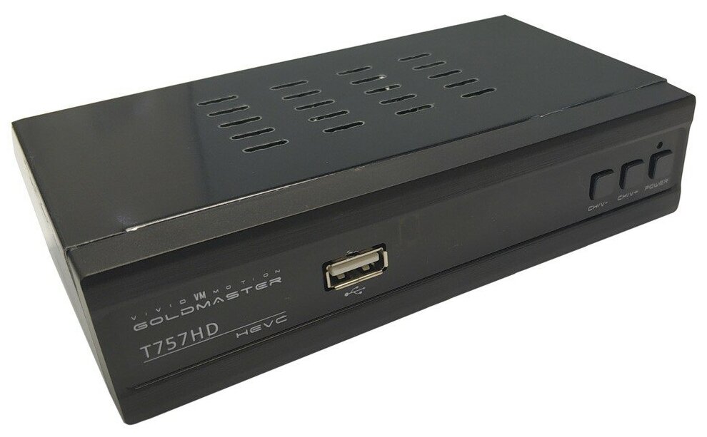 Цифровой телевизионный приемник GoldMaster T-757HD (DVB-T2 / C / IPTV, DVB-T2 / C / IPTV, H.265, металл, дисплей, кнопки, внешнийБП) (Приставка цифровая)