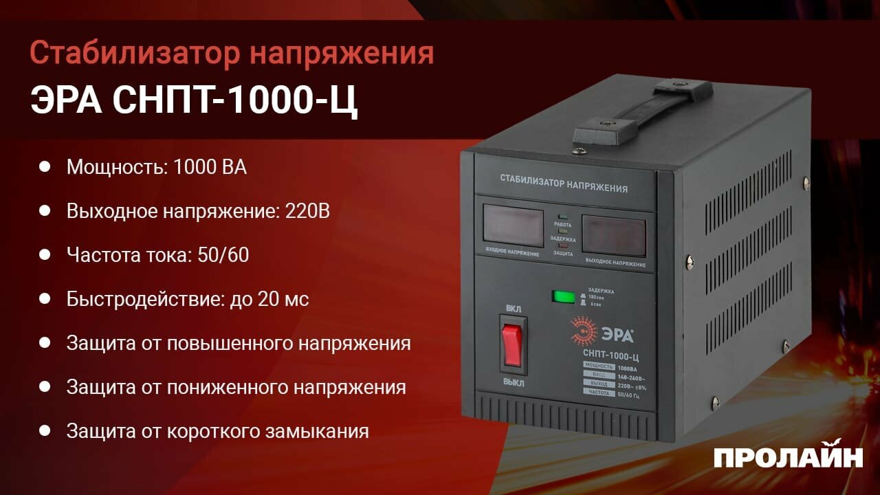 Стабилизатор напряжения Эра СНПТ-1000-Ц, черный [б0020158]