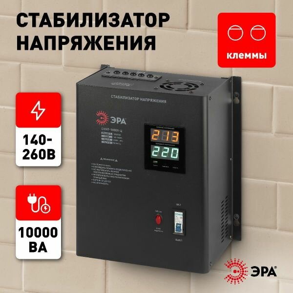 ЭРА СННТ-10000-Ц ЭРА Стабилизатор напряжения настенный, ц.д., 140-260В/220/В, 10000ВА