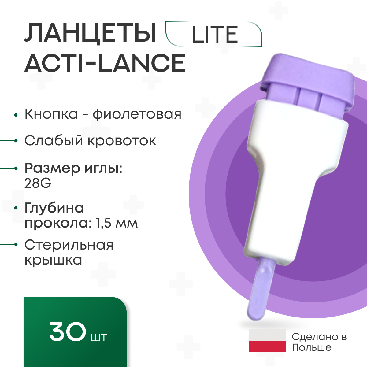 Купить Ланцеты Acti-lance Lite для капиллярного забора крови, 30 шт., глубина прокола 1,5 мм, фиолетовые
