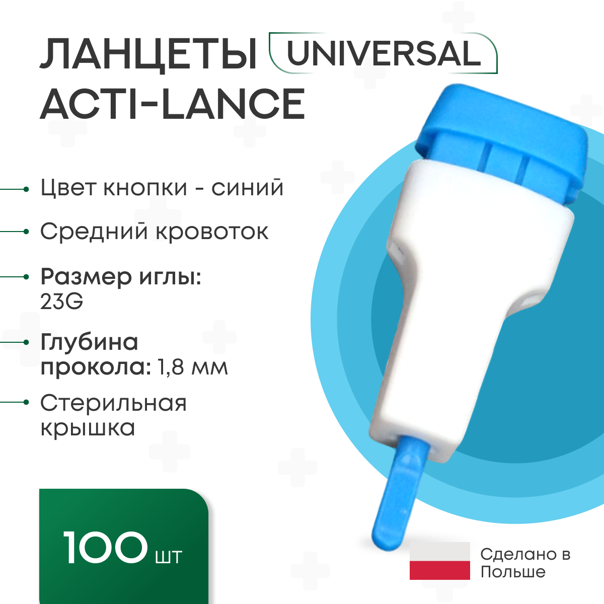 Купить Ланцеты Acti-lance Universal для капиллярного забора крови, 100 шт., глубина прокола 1,8 мм, синие