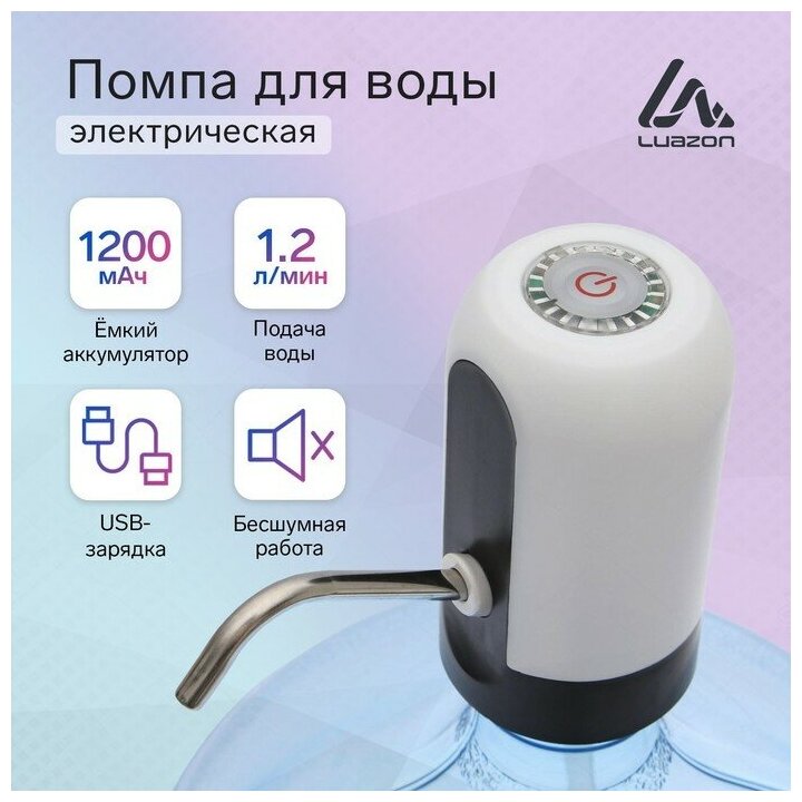 Luazon Home Помпа для воды Luazon LWP-05, электрическая, 4 Вт, 1.2 л/мин, 1200 мАч, от USB, белая