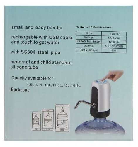 Электрическая помпа для воды , установка на бутылку, белая BM
