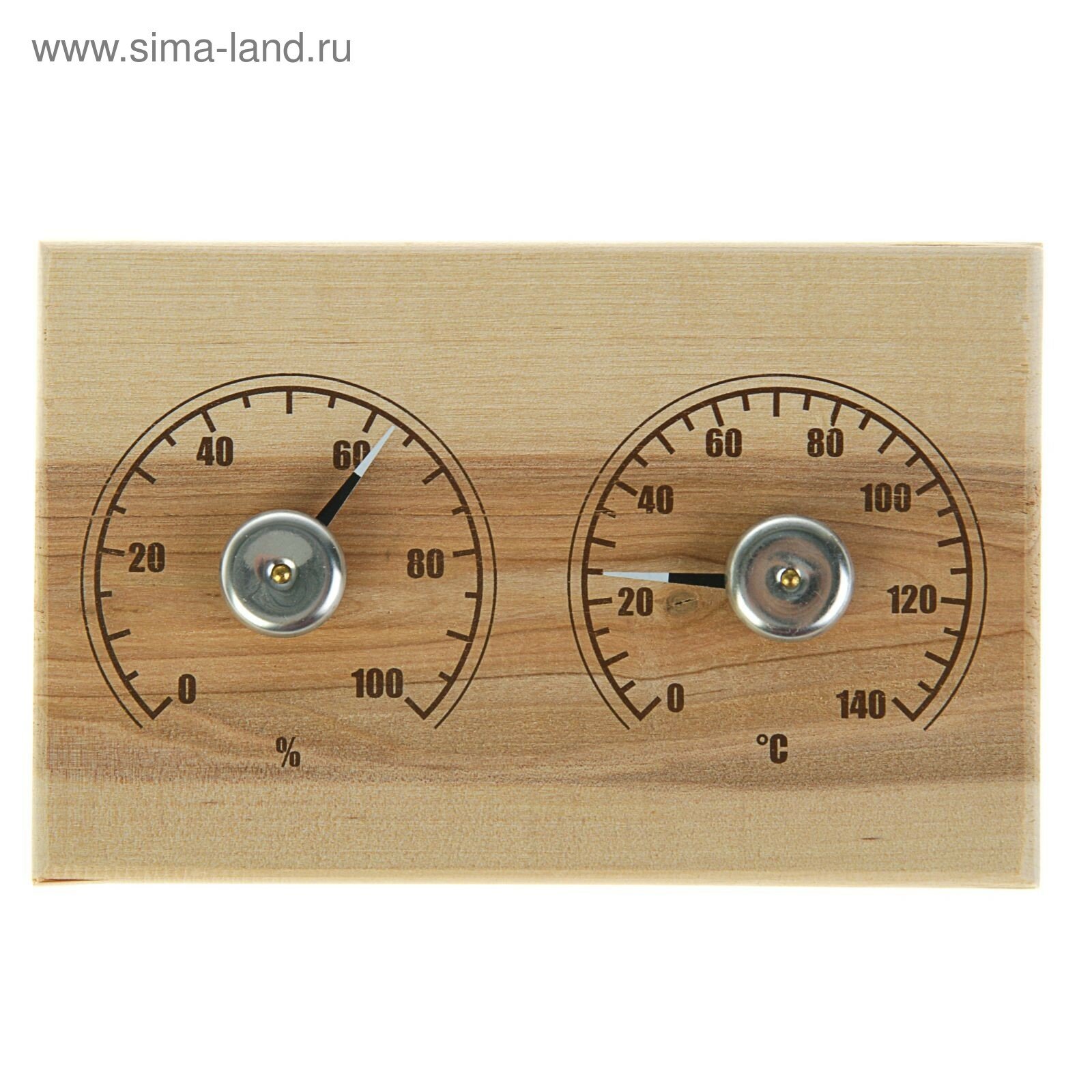 Купить Деревянный термометр + гигрометр "Станция банная открытая бытовая", прямоугольная 2545545