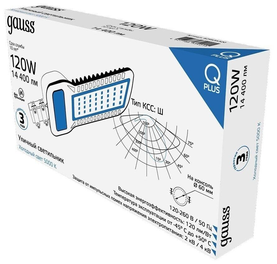 Уличный светодиодный консольный светильник Gauss Qplus 629535320 интересное: