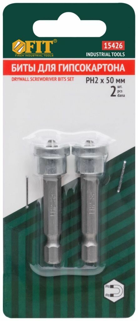 Насадки д/быстрого завинч.самор.по гипр., набор 2 шт, сталь S2 Профи, PH2 x 50 мм 15426 FIT