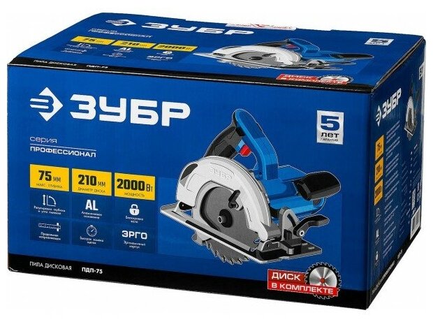 Пила дисковая, 90-75 мм, диск 210 мм, 2000 Вт, ЗУБР Профессионал интересное: