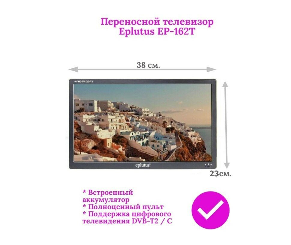 СохранитьПортативный телевизор Эплутус Модель: EP-162Т (C97912LET) 16 дюймов и с аккумулятором 3500 мАч DVB-T2 - цифровой ЖК-телевизор с экраном 16 дюймов (4 интересное: