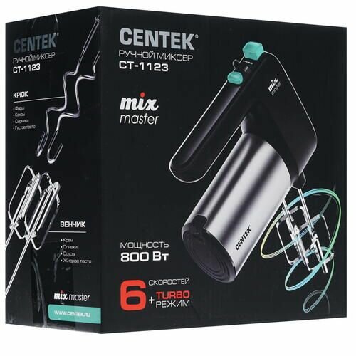 Centek Миксер (черн/сталь) 1200Вт, 5 скоростей+турбо, взбивание/замешивание CT-1120