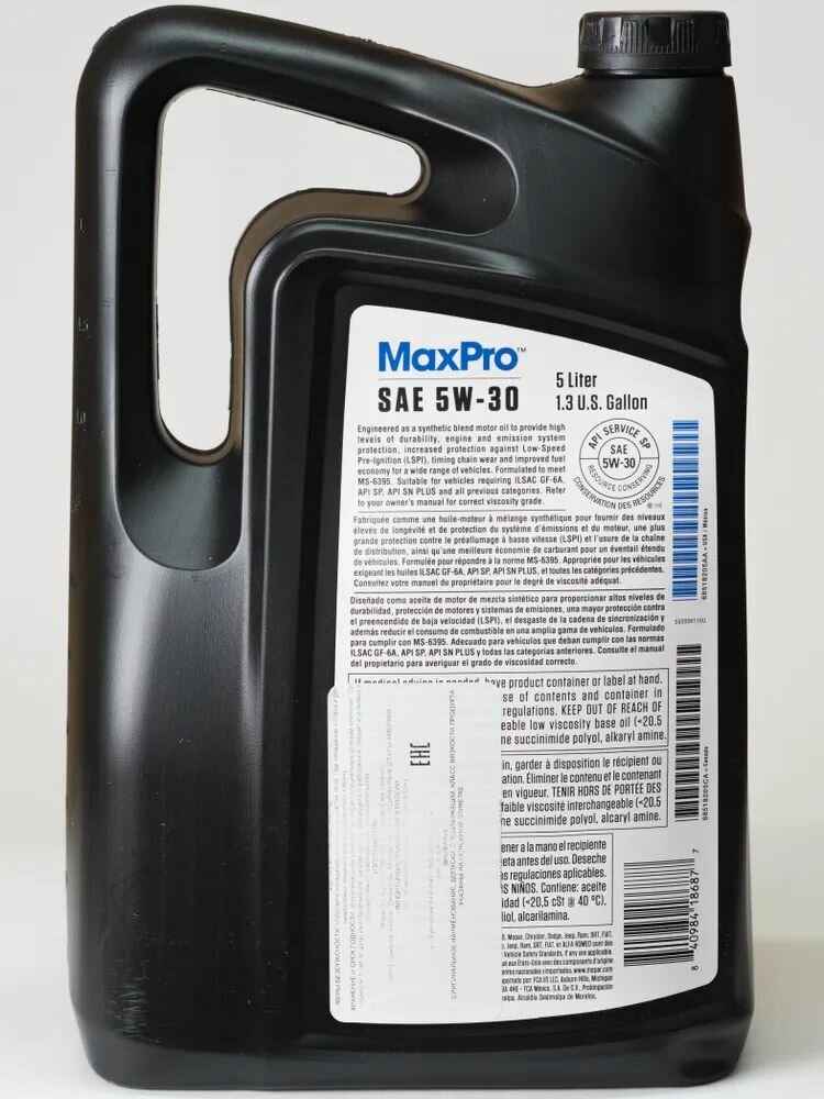 СохранитьМоторное масло Mopar MaxPro SAE 5W30 5л (68218921AC) интересное: