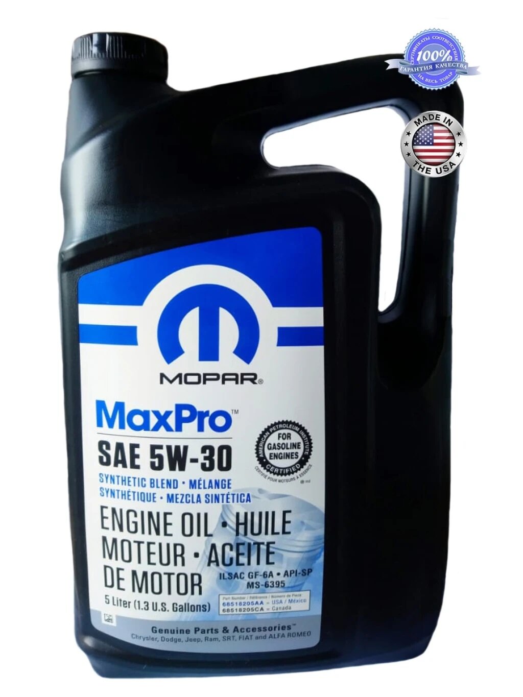 Chrysler Mopar SP 5W-30 MaxPro (Оман), масло моторное 1л + лейка, масло для автомобиля 68218920UB