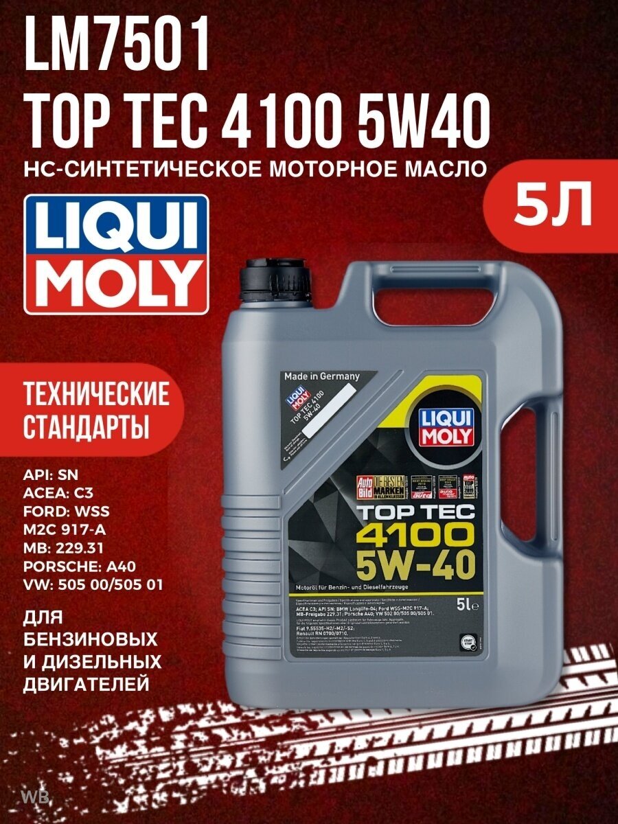 7500 LiquiMoly НС-синтетическое моторное масло Top Tec 4100 5W-40 1л