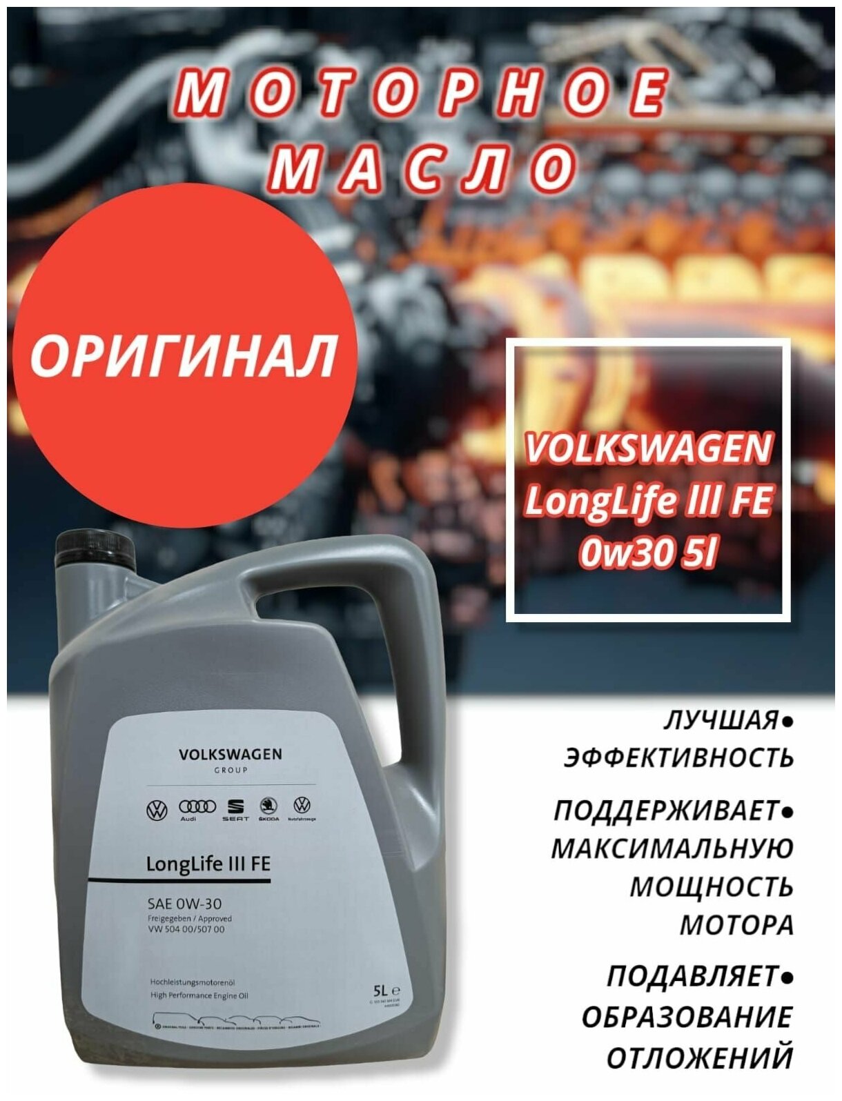 Синтетическое моторное масло VOLKSWAGEN Longlife III FE 0W-30, 5 л, 5 кг, 1 шт