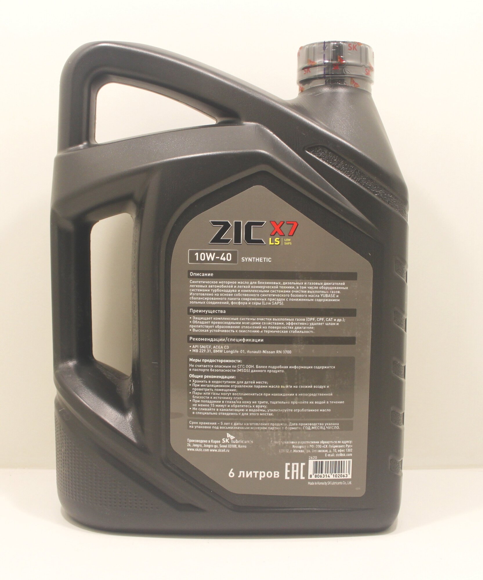 Купить Синтетическое моторное масло ZIC X7 LS 10W-40, 6 л