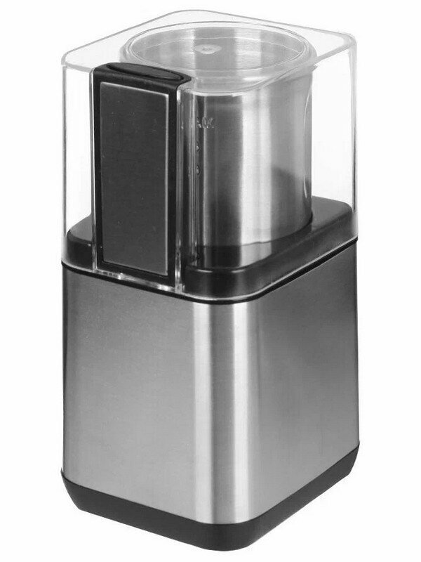 | Плюсы: | Большой плюс - корпус из нержавеющей стали. Также ёмкость из нержавеющей стали для помола кофе или специй. Объём чаши оптимальный: 80 гр. Крышка пластиковая. Она закрывает емкость для помола сверху, таким образом перемалываемые продукты не бьются об нее, у крышки не скалываются кусочки пластика и не попадают в пищу. Данная проблема была у меня с предыдущей кофемолкой другой фирмы. Здесь этот момент продуман. Крышка прозрачная, но это не дает больших преимуществ - на нее оседает во время помола пыль от продукта и для оценки размера частиц в любом случае необходимо открывать крышку. Оптимальная мощность, быстрый помол. |