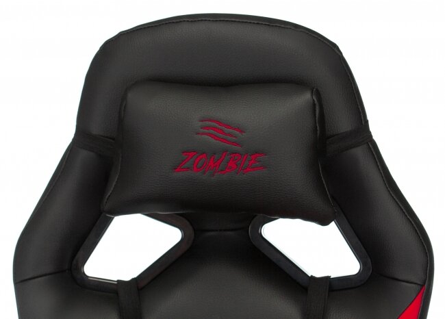 Кресло компьютерное игровое Zombie, экокожа, черное, красное, крестовина пластик - Кресло геймерское, с подголовником