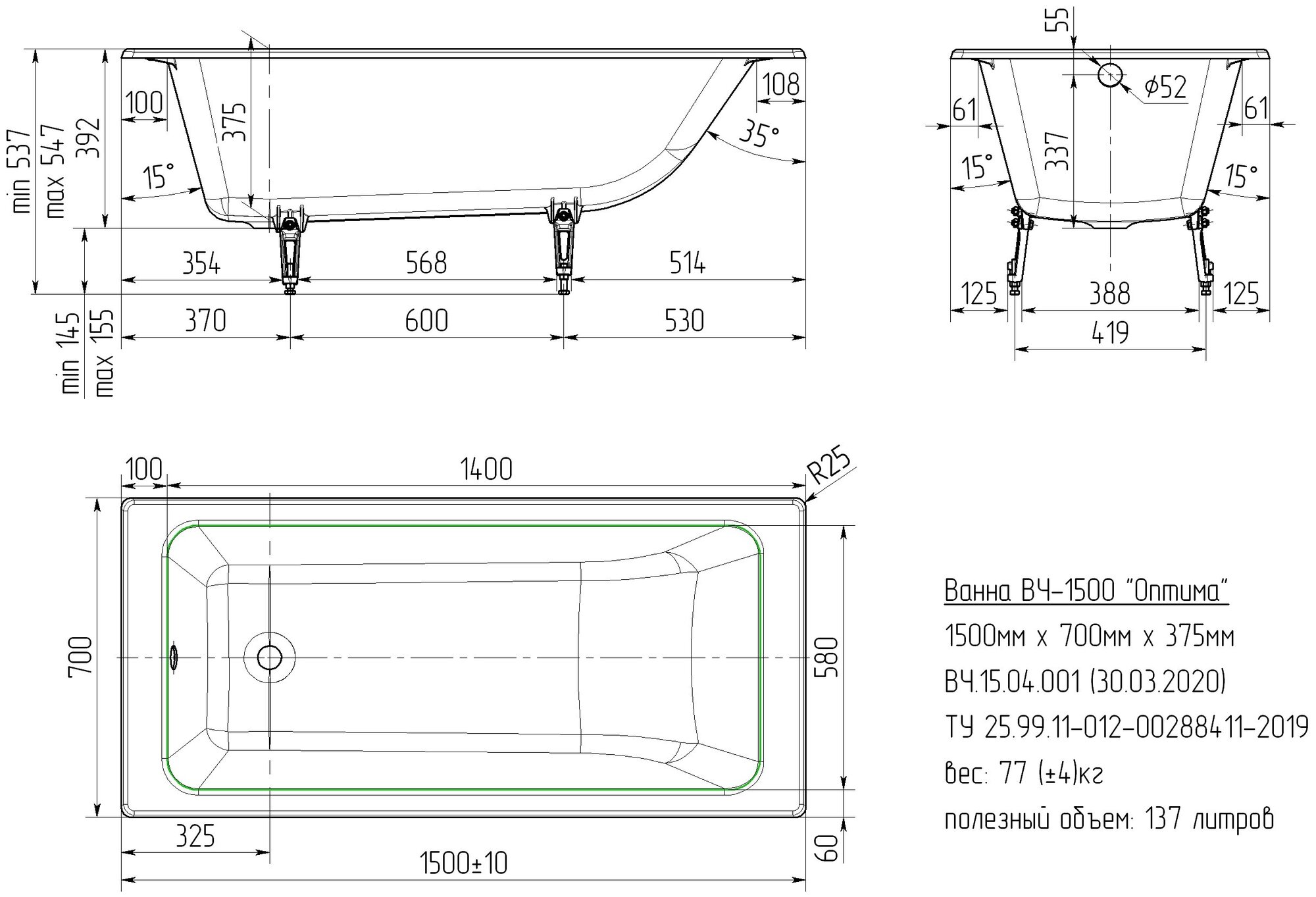 | Объем | 137 л |