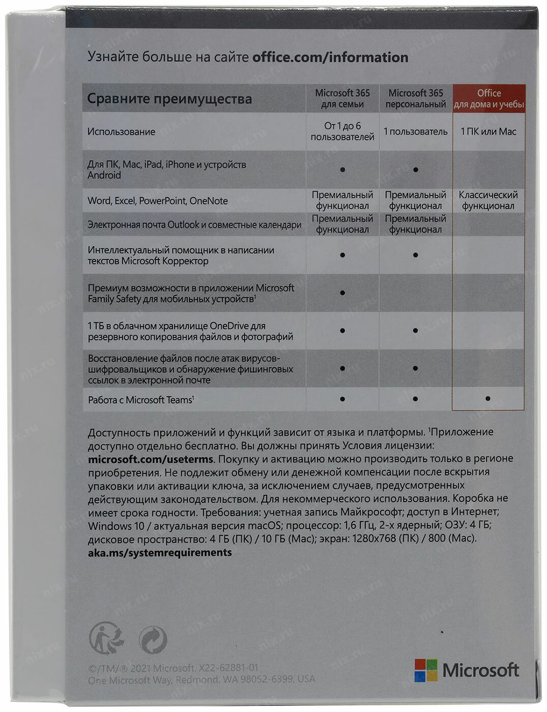 Купить 79G-05425 Microsoft Office Home and Student 2021 Russian Russia Only Medialess