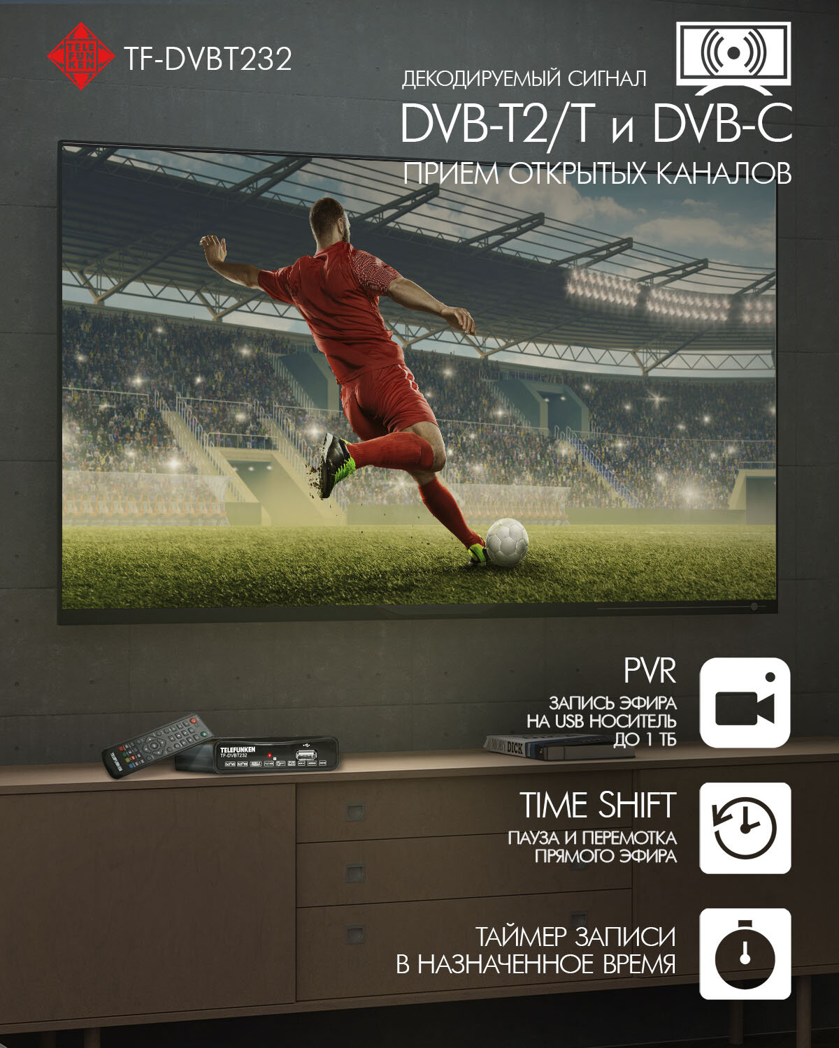 ТВ-приставка Плееры Медиа TELEFUNKEN TF-DVBT232(черный) ТВ тюнер