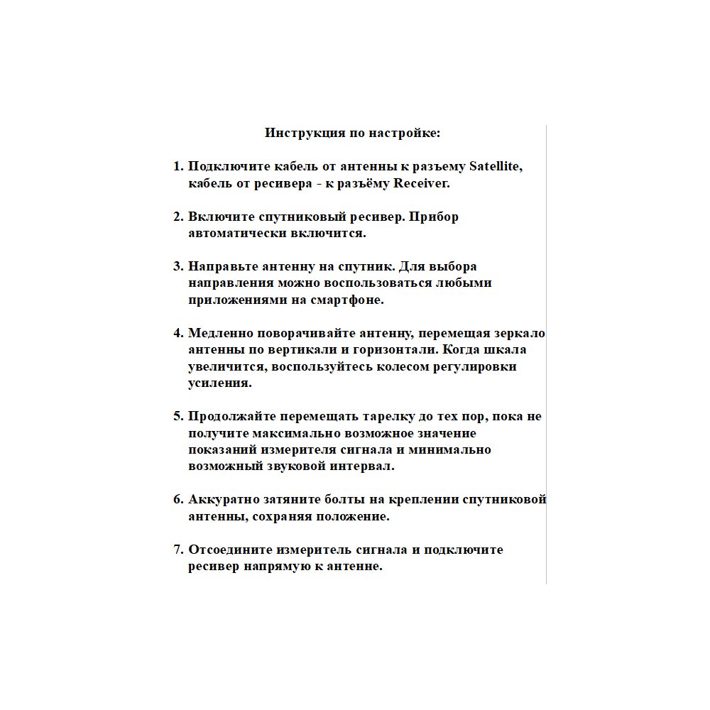 Недостаток в том что при установке и настройки антенны нет автономного питания нужно подключаться к ресиверу для питания прибора. Но при совершению ремонта изначально уже проведён кабель с ресивера к антенне. Так что всё зависит от того для каких целей нужен прибор для ремонта удобен, а вот для первоначально установки антенны нужно будет провести кабель с ресивера к антенне для того чтобы можно было настроить антенну
