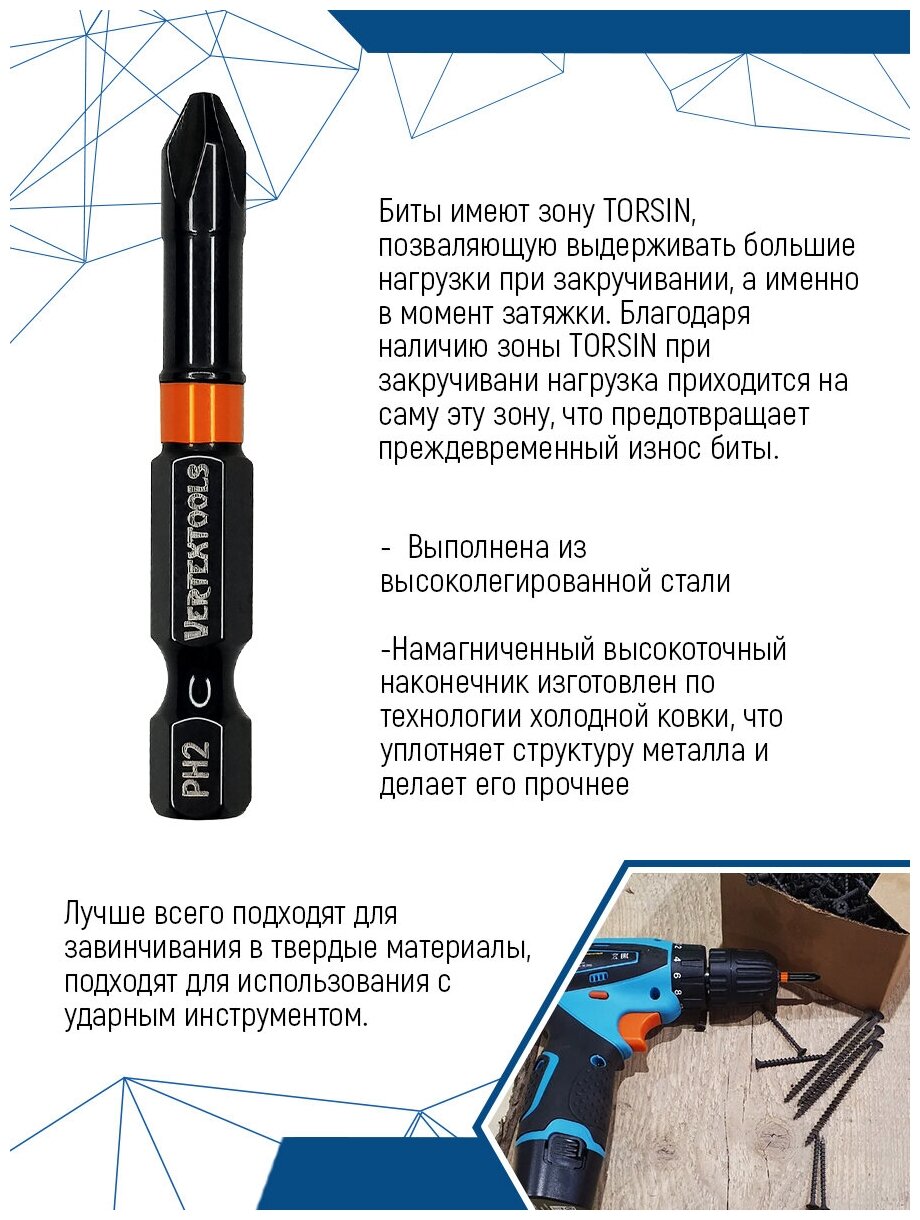 Vertextools Набор БИТ Impact Torsion PH2x50 IP-TR-PH2-50 . интересное:
