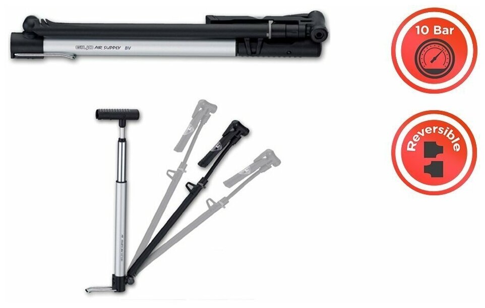 Купить Насос 6-190202 GM-821 алюминиевый, с манометром и подножкой, универсальная головка, до 140PSI (9атм), серебристый GIYO