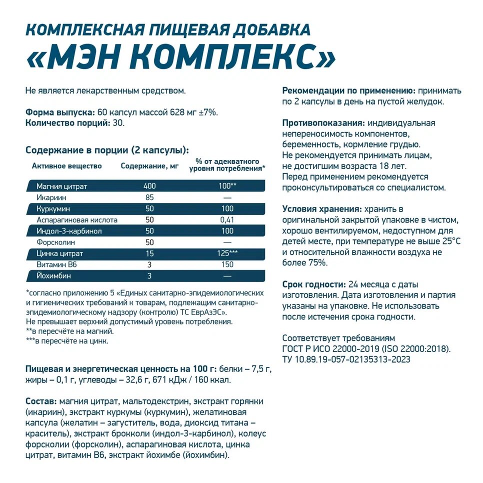 Капсулы тесто либидо бустер 60 cap МЭН комплекс